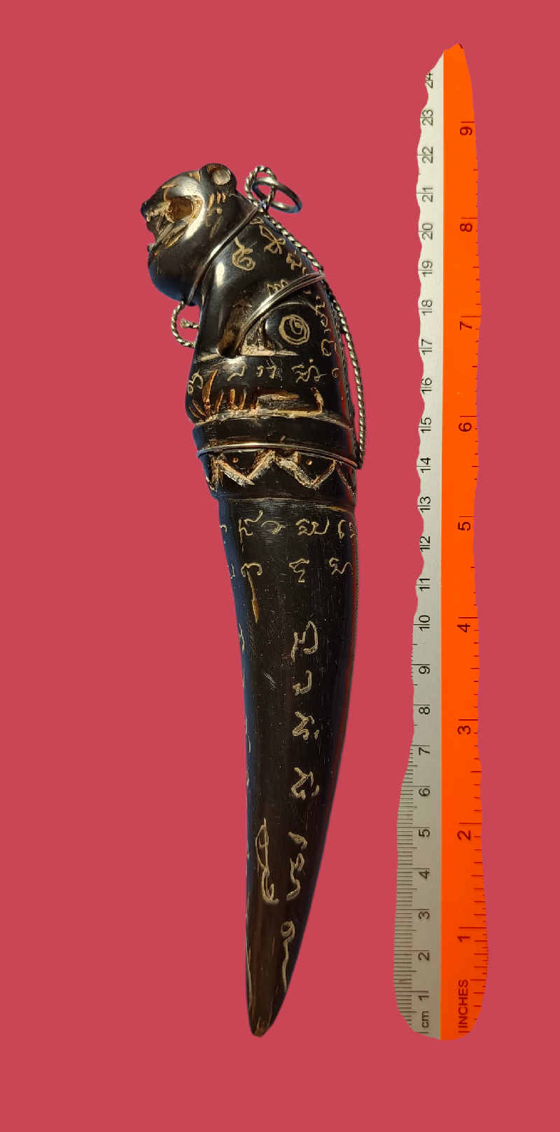 (วัดใจ...เหมาพระบ้านมาได้) เสือแกะจากเขาควายเผือก หลวงพ่อชาญ วัดบางบ่อ สมุทรปราการ สภาพสวยเดิมๆพร้อมเลี่ยมกรอบเงินแปะตั้ง |