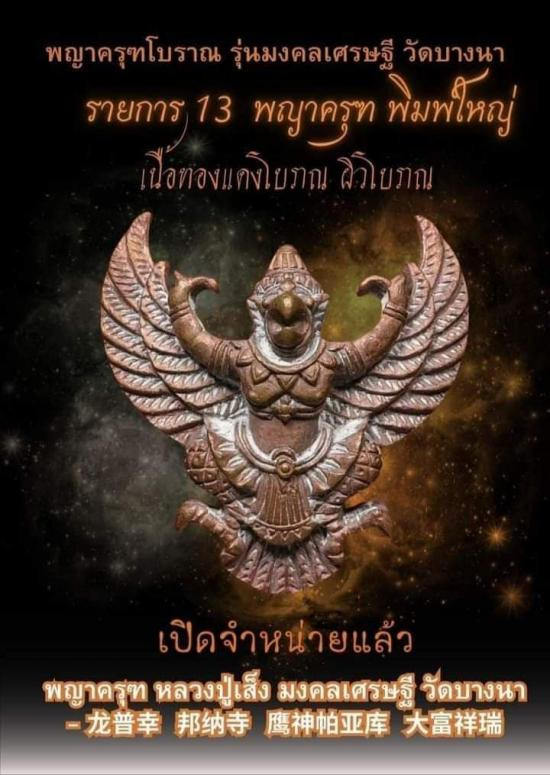 เคาะเดียว 220... พระนารายณ์ทรงครุฑมหาจักรพรรดิ หลังฝังคันฉ่อง ตะกรุด 4 ดอก วัดหน้าพระเมรุฯ จ.อยุธยา ปี 52 เกจิมากมาย อาทิ ลพ.ชำนาญ ,ลพ.ฟู ,ลพ.สิริ วัดตาล