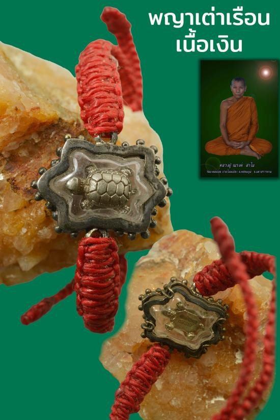 พญาเต่าเรือนเนื้อเงิน หลวงปู่ณรงค์ สาโม วัดมงคลนิมิต มหาสารคาม คาถาหัวใจพญาเต่าเรือน นะสังสิโม พร้อมกรอบกันน้ำ ร้อยสร้อยข้อมือ