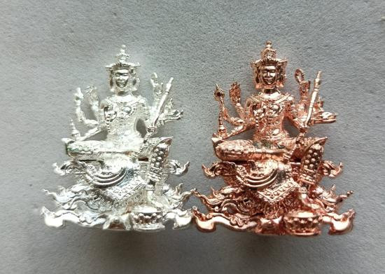 วัดใจเคาะเดียวแดงจ้า รูปหล่อพระพรหมอุดกริ่ง หลวงพ่อนพวรรณ พิมพ์เล็ก เนื้อบรอนซ์ชุบเงิน+บรอนซ์ชุบนาค จิวเวลรี่ เคาะเดียวแดงจ้า |