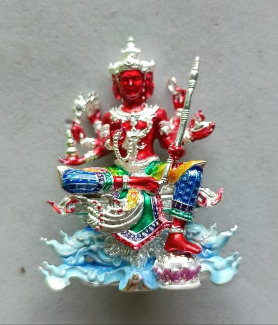 วัดใจเคาะเดียวแดงจ้า รูปหล่อพระพรหมอุดกริ่ง หลวงพ่อนพวรรณ วัดเสนานิมิตร เนื้อเงินลงยาราชาวดีกายแดง หมายเลข8 เคาะเดียวแดงจ้า |