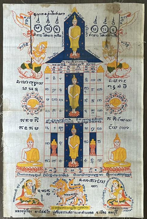 @@@...ผ้ายันต์เลื่อนสมณศักดิ์ หลวงพ่อรวย วัดตะโก อยุธยา สีน้ำเงินขนาด 17x23.5 นิ้ว ปี 2559 มีตราปั๊ม...@@@ ทันหลวงพ่อรวย ปลุกเส |