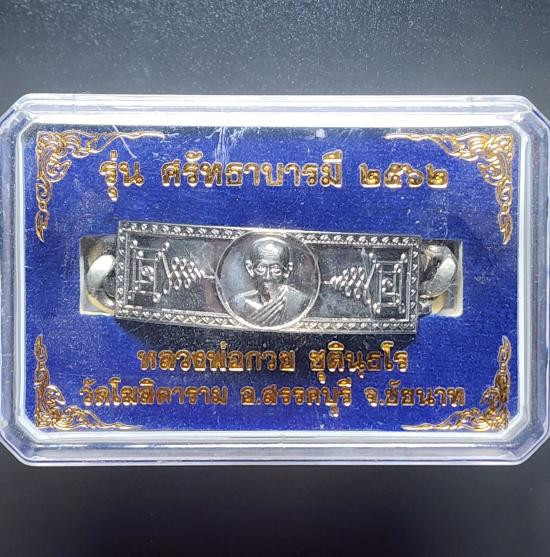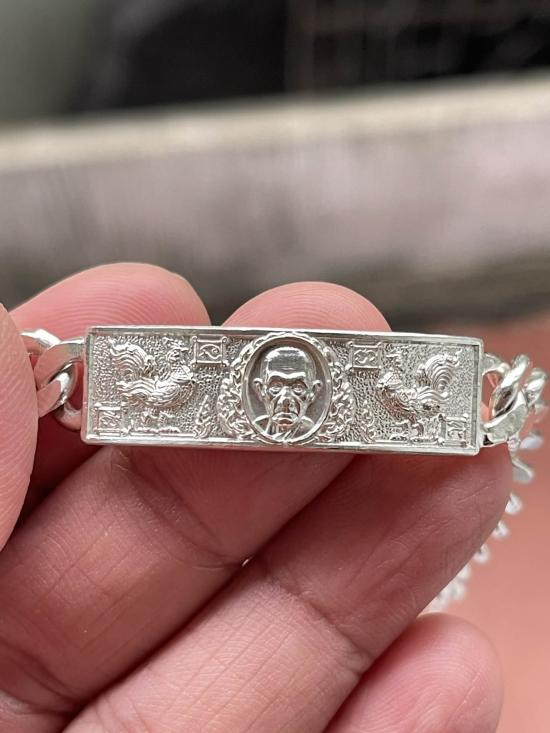 เลสข้อมือ หลวงพ่อรวย วัดตะโก อยุธยา หมายเลข 901 โค๊ต นะ รุ่นรวยโชคโภคทรัพย์ เนื้อเงินลงยาสีฟ้า น้ำหนัก 1 บาท ที่ระลึกแจกกฐิน |