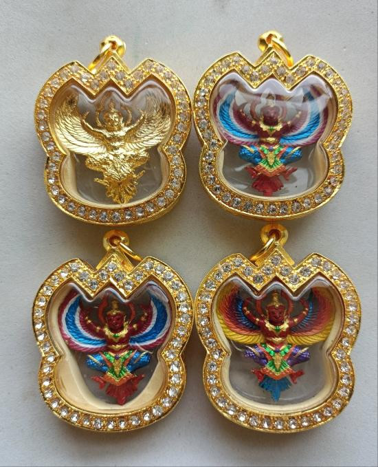 วัดใจเคาะเดียวแดงจ้า พญาครุฑ หลวงปู่บุญมา วัดเขาแก้วทอง จำนวน4องค์ หมายเลข111/666/5/50 พร้อมตลับอิตาลีฝังเพชร เคาะเดียวแดงจ้า