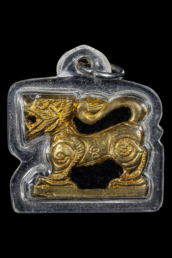 สิงห์สุพรรณรุ่นแรก หลวงปู่นาม วัดน้อยชมภู่ จ.สุพรรณบุรี เนื้อทองเหลือง ตอกโค๊ด + เลข เลี่ยมกันน้ำ (เคาะเดียวแดง)
