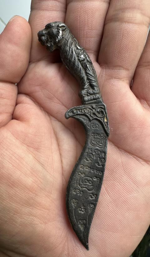 วัดใจ**เครื่องราง มีดหมอหลวงพ่อรุ่ง วัดหนองสีนวล*{ ใบเหล็ก }*ตอกตะปู อุดชันโรงเก่าด้ามไม้+ไม่มีฝัก ยาว 16.นิ้ว หายาก...ตามสภาพครับ |