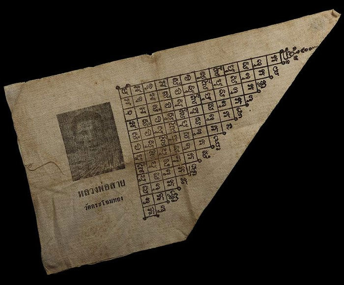 100 / ผ้ายันต์ชายธง หลวงพ่อสายวัดกระโจมทองสมุทรสาคร สวยเดิมๆตามรูปครับ |