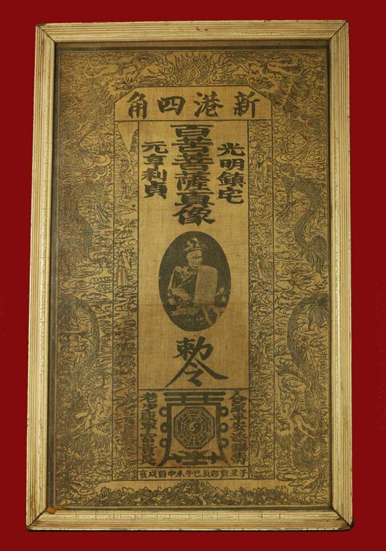 ผ้ายันต์ เซียนแป๊ะโค้ว หัวตะเข้ ผ้าดิบยุคต้น กรอบเดิม ขนาด 9x13 นิ้ว สวย สมบูรณ์ |