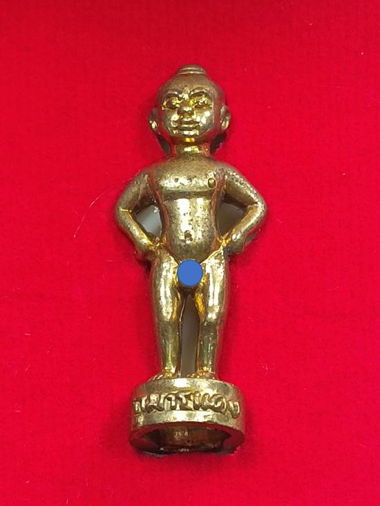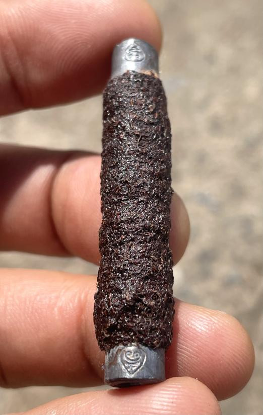 วัดใจ เคาะเดียวแดง ลิง หนุมาน จับหลัก ใต้ฐานฝังตระกรุดทองคำ เก่ามีอายุ ไม่แน่ใจว่าเป็นศิลป์ทางหลวงพ่อดิ่งหรือเปล่า เอาเป็นว่าไม่ทราบที่ ไม่รู้ข้อมูลการสร้างดีกว่า ขนาดประมาณ 0.8 X 2 ซ.ม. |