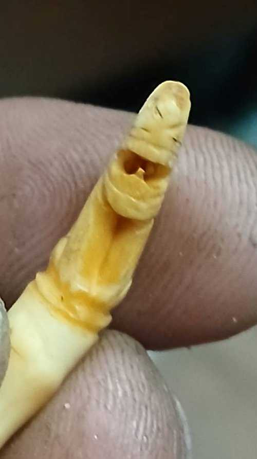 วัดใจ**เครื่องราง*{ เขี้ยวเสือไฟแกะรูปเสือเต็มเขี้ยว }*หุ้มเงินเก่า ยาว 1.8นิ้ว ของทนสิทธิ์มีดีในตัว เป็นมหาอำนาจ หายาก...ตามสภาพครับ |