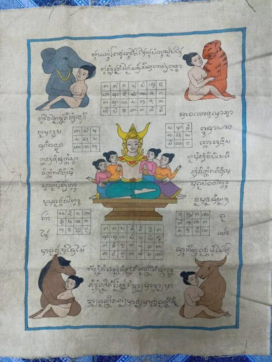 ผ้ายันต์ พญาเขาคำ มหาเสน่ห์ เมตตามหานิยม งานพุทธศิลป์ ยุคใหม่ มนต์เสน่ห์แห่งเครื่องราง งานเขียนมือ ขนาด 44*57 ซม..***วัดใจเคาะแรก** |