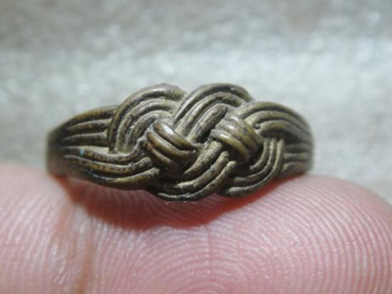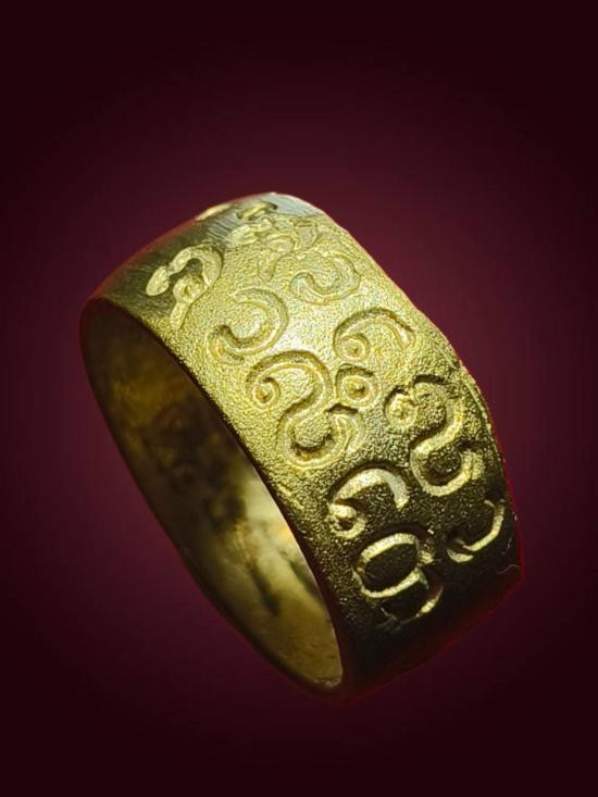 แหวนปลอกมีด หลวงปู่เกลี้ยง วัดโนนแกด รุ่น 101 ปี ขนาดความกว้างภายในวง 2 เซนติเมตร เนื้อทองผสม สร้างปี 2551 |