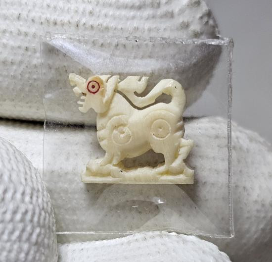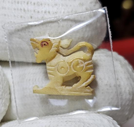 สิงห์งาแกะ หลวงพ่อหอม วัดชากหมาก สามขวัญ พิมพ์ศิลป์ B ปี 2490-2520 จ.ระยอง ใหญ่ ขนาด 1.5 ซม. งาเก่า ฉ่ำๆ พร้อมบัตรรับรอง |