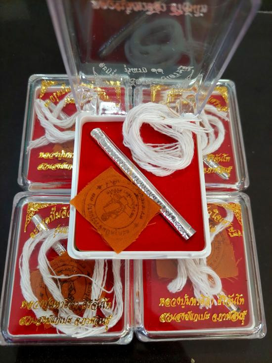 ตะกรุดเงิน ปั๊มจีวรหัวใจเศรษฐีรุ่นแรก 77 ยุคต้น หลวงปู่ศิลา สิริจันโท จำนวน 5 กล่อง |