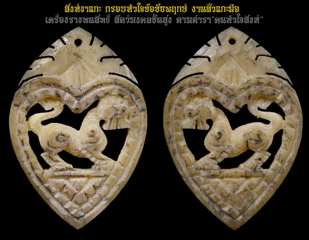 สิงห์งาแกะ กรอบหัวใจช่อชัยพฤกษ์ งานสิ่วแกะมือ ขนาด2x3ซม. ไม่ทราบที่ เครื่องรางทนสิทธิ์ สัตว์มงคลชั้นสูง ตำราสูตร"คนหัวใจสิงห์" |