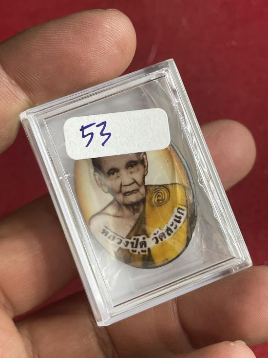 หลวงปู่ดู่ วัดสะแก ฉากสีไข่ไก่ ซีเปีย พิมพ์รูปไข่ หลังยันต์ เนื้อตะกั่ว ปี 53 |