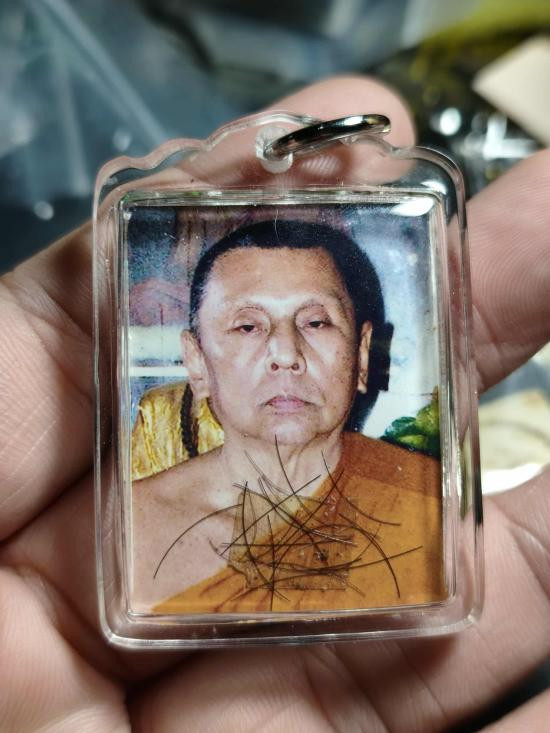 รูปถ่าย หลวงพ่อใจ วัดพระยาญาติ อัมพวา หลังจาร มีเกศา |