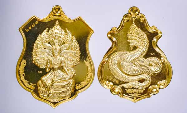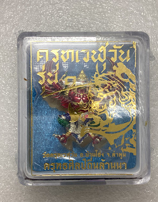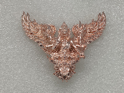 เคาะเดียวแดง 250 พญาครุฑทรงมหิธานุภาพ เชิญธงเศรษฐี วัดครุฑธาราม จ.พระนครศรีอยุธยา พิมพ์ใหญ่ สูง 4.5 ซ.ม. เนื้อตริยะโลหะ (สัมฤทธิ์ผล) ชุบ 2 K ลงยาราชาวดี ซีลเดิมยังไม่ได้แกะ |