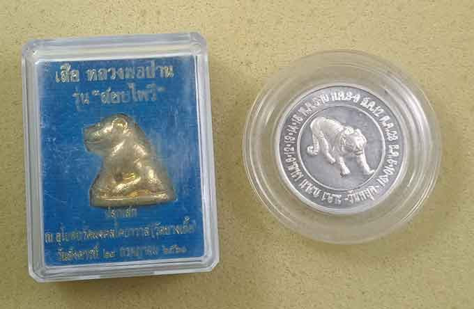 เสือหลวงพ่อปาน วัดบางเหี้ย รุ่นสยบไพรี พิมพ์หุบปาก กล่องเดิม + เหรียญกษาปณ์ขัดเงา ที่ระลึกวันหยุดประจำปีขาล 2541