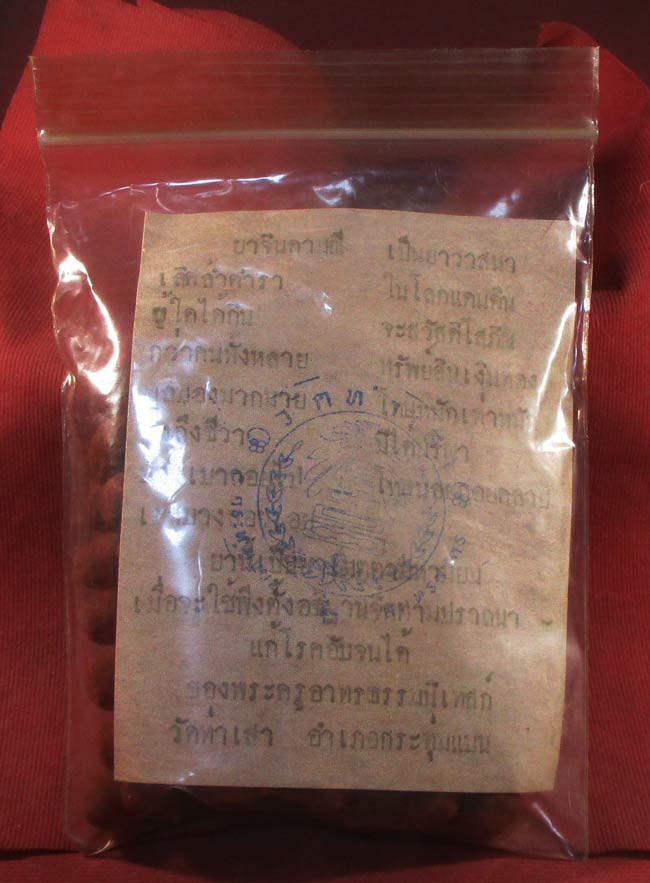 เม็ดยา พระครูอาทรธรรมนิเทสก วัดท่าเสา อ.กระทุ่มแบน จ.สมุทรสาคร ในซองมี 100 เม็ด ครับ (พระบ้าน ครับ) |