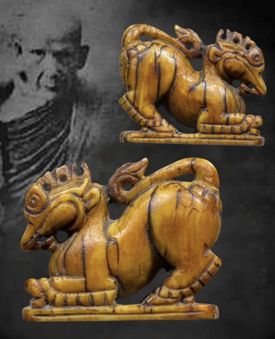 เคาะเดียวแดง+ งาแกะ สิงห์3ขวัญ ไม่ทราบที่ ขนาด1.5ซม. ศิลป์สวยครับ |