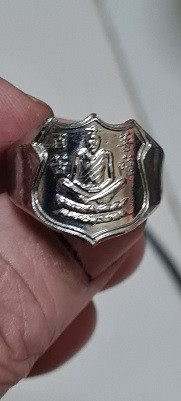 แหวนพระไตรสรณคมน์อันตรายาปิ ขนาดแหวนเบอร์ 55 หลวงพ่อหนุน วัดพุทธโมกข์ สกลนคร |