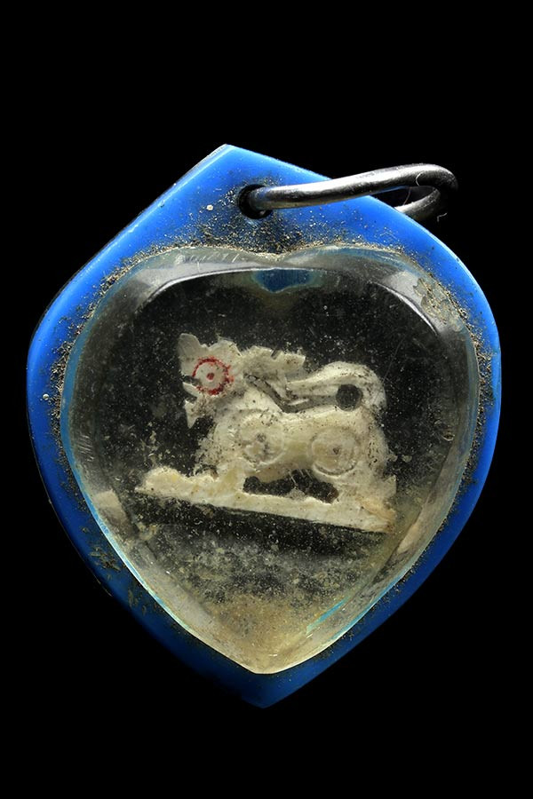 พญาแมลงภู่คำ ลักษณะ เนื้อชนวนรมดำ เพศ ตัวเมีย ขาทะลุ ผู้สร้าง/ปลุกเสก สล่าปะอ่อง จองคำ แหล่งที่มา แม่ฮ่องสอน ปีที่จัดสร้าง พ.ศ. ๒๕๖๒ (ปี 2562) |