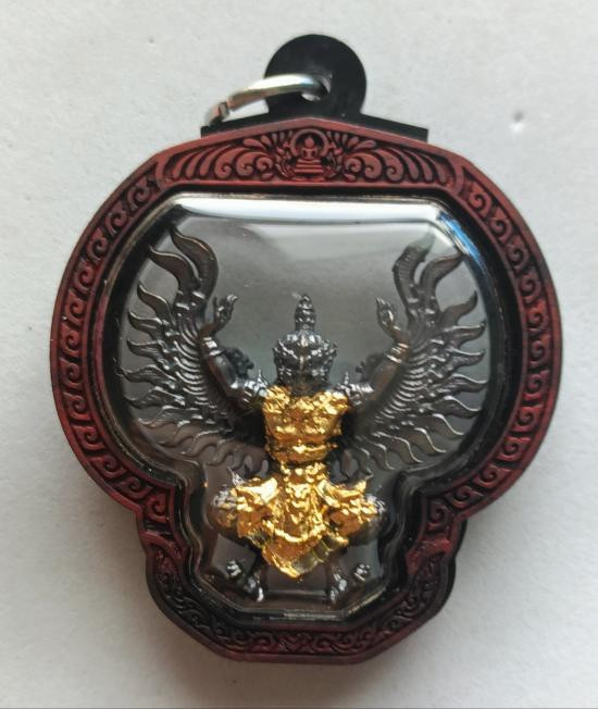 พญาครุฑ รุ่นมีโชคพันล้าน หลวงพ่อโชคชัย วัดน้ำดิบ เนื้อมหาชนวนชุบทองลงยากายฟ้า สร้าง 80 องค์ หมายเลข 56 |