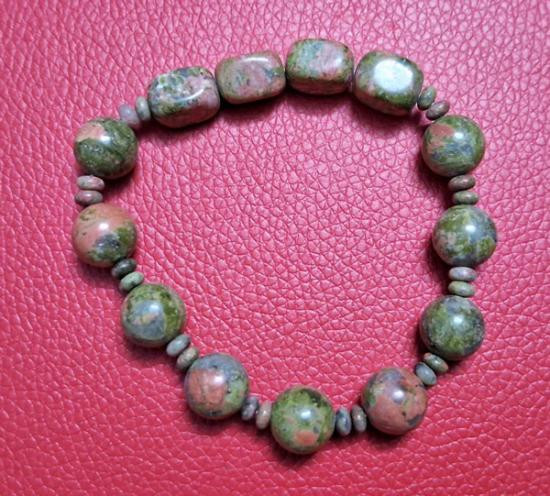 กำไลข้อมือประคำหินยูนาไคต์ (Unakite) แท้ หรือ หินถูกหวย ร้อยด้วยเอ็นยืด ขนาดฟรีไซด์ (กท.21) |