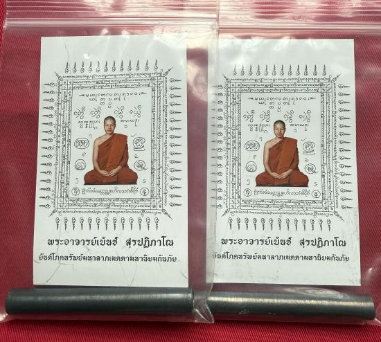 วัดใจ 100 ตะกรุดเจริญพร รุ่นแรก เขียนยันต์ จารมือ หลวงปู่ดา วัดลาดระโหง อยุธยา 2565 ตะกั่ว เชือกถัก ลงรักปิดทอง อุดมวลสาร หมายเลข 78 กล่องเดิม |