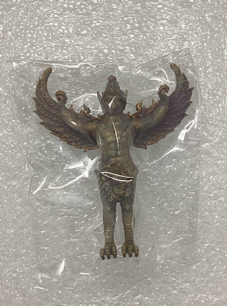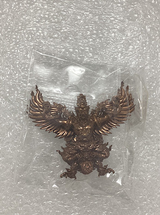 เคาะเดียวแดง 100 พญาครุฑทรงฤทธิ์ ชนะมาร วัดครุฑธาราม พระนครศรีอยุธยา พิมพ์เล็ก สูง 3.2 ซ.ม. เนื้อทองแดงขัดยาดำ (แจกในพิธี) |