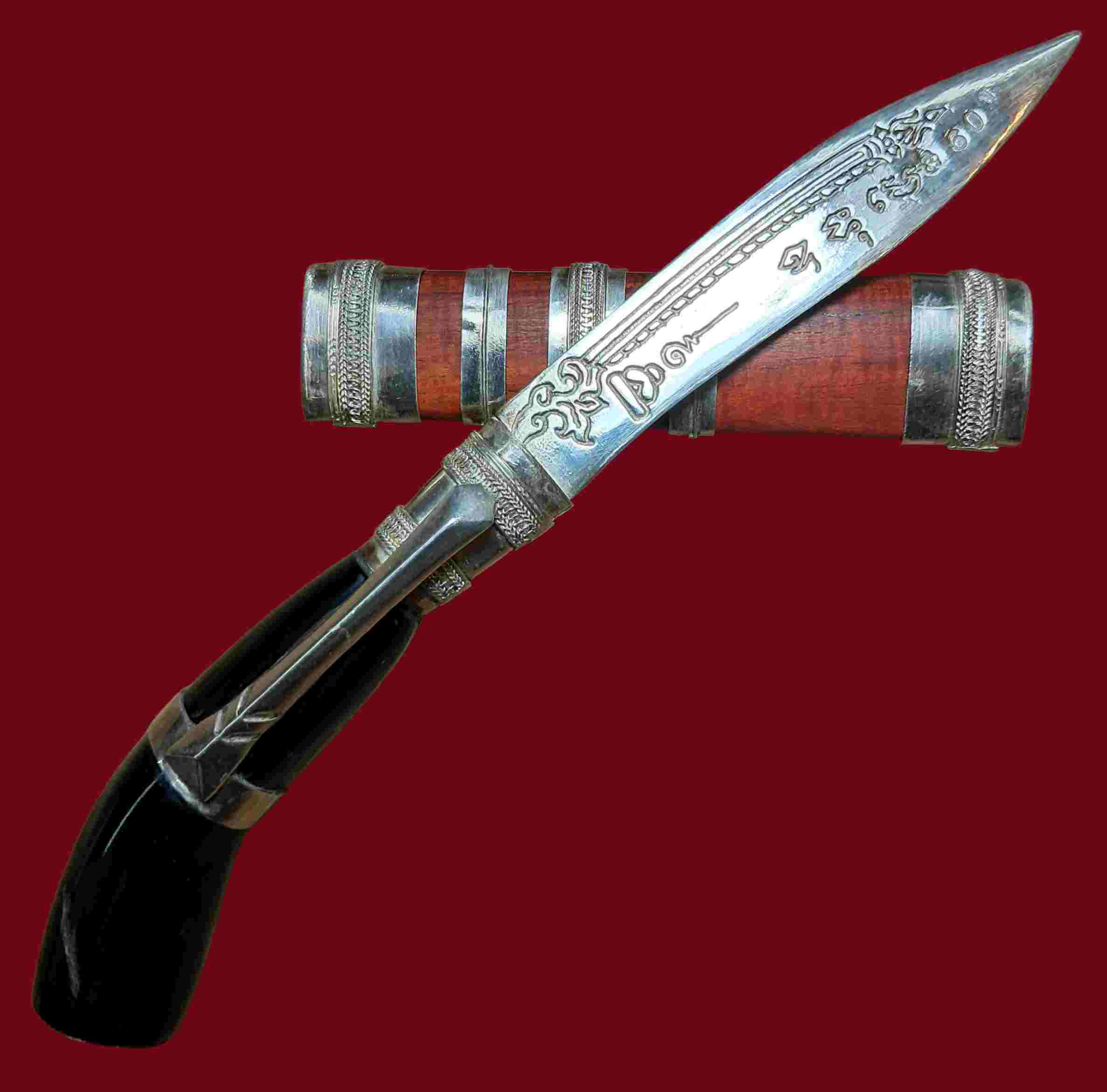 มีดหมอไม่ทราบที่ ใบมีดเนื้อเงินแท้ แหมด้ามฝักเงินแท้ ด้ามกัลปังหาดำท้ายมีด ปิดด้วยยันต์จักรนารายณ์ ตอกโค๊ต+ตอกหมายเลข60 รับประกันแท้ไม่ทราบที่ |