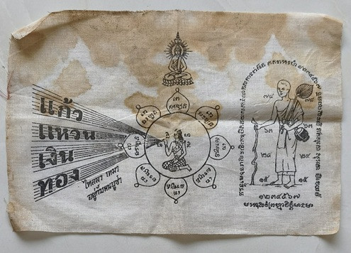 ผ้ายันต์ สิวลี แก้ว แหวน เงิน ทอง เก่าขนาด7คูณ 10นิ้ว หลวงปู่โต๊ะเสก |