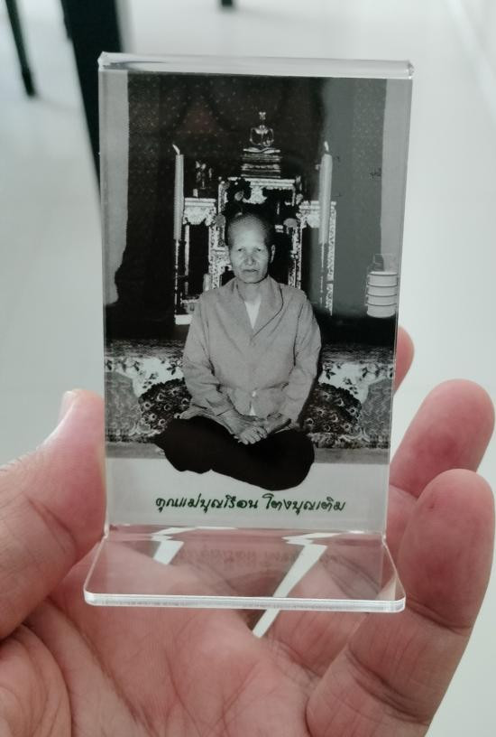 รูปถ่ายคุณแม่บุญเรือน โตงบุญเติม ขนาดตั้งโต๊ะ ด้านหลังคาถาพระฉิมพลี ขนาดประมาณ2นิ้วกว่าๆx3.5นิ้ว สภาพสวย เอาไว้ตั้งโต๊ะที่ทำงาน หรือไว้หิ้งพระที่บ้านสวยงามเป็นมงคล น่าสะสมบูชา เคาะเดียวแดง |