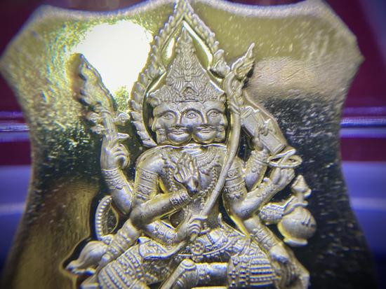 เหรียญพระพรหม อาจารย์สุพิศ ศรีราษฎร์ วัดกลางเหนือ จ.สมุทรสงคราม รุ่นแรก ( เนื้อทองฝาบาตร ) #พรหมแม่กลอง |