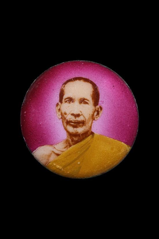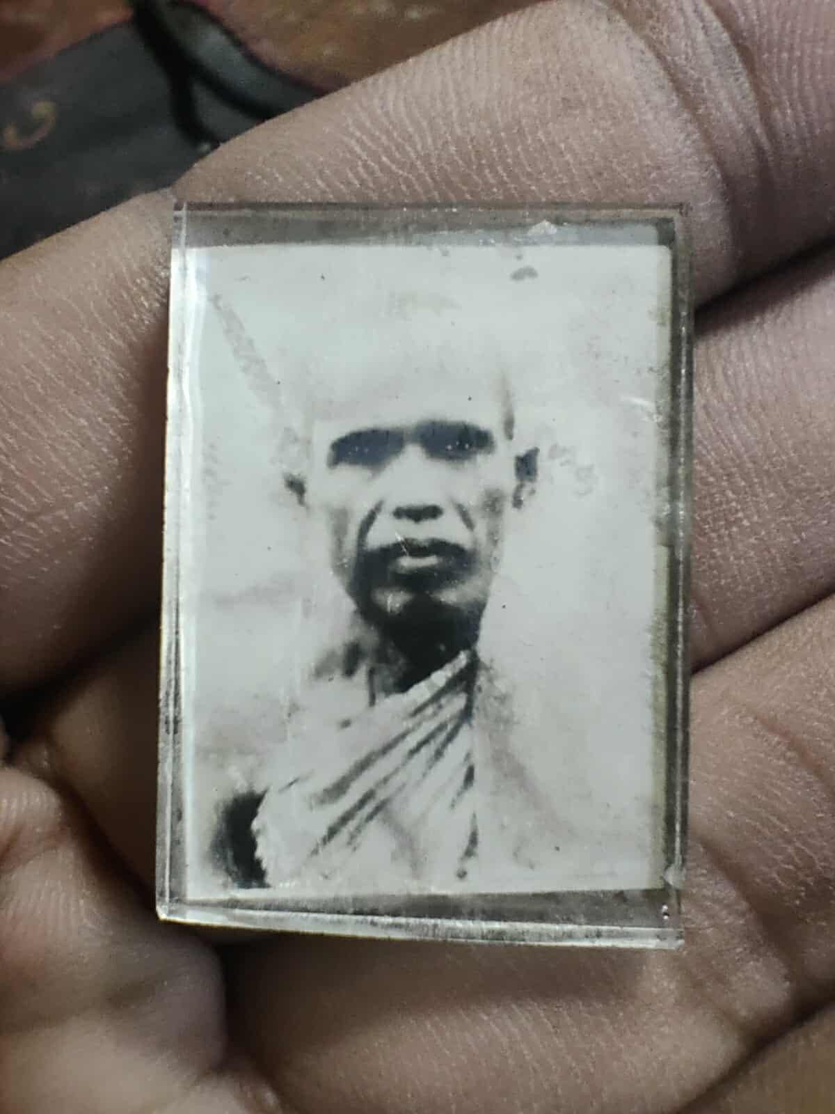 รูปถ่ายติดกระจก หลวงพ่อจันทร์ วัดตาเจี่ย จ.สมุทรปราการ ปี 2516 หลวงปู่เดินหน ปลุกเสกเดิมๆ |