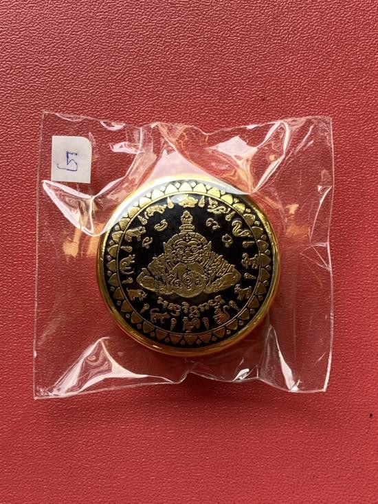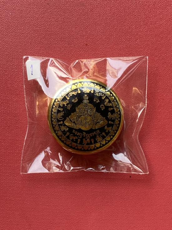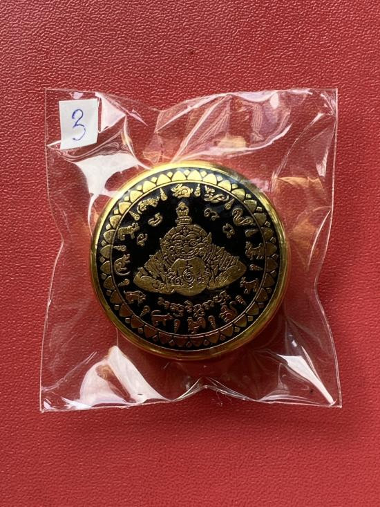 เคาะเดียวแดง สีผึ้งพระราหู รุ่น มงคลจักรวาล เนื้อ โลหะชุบทองลงยาสีดำขอบสีดำ ขนาด 3.2ซม |