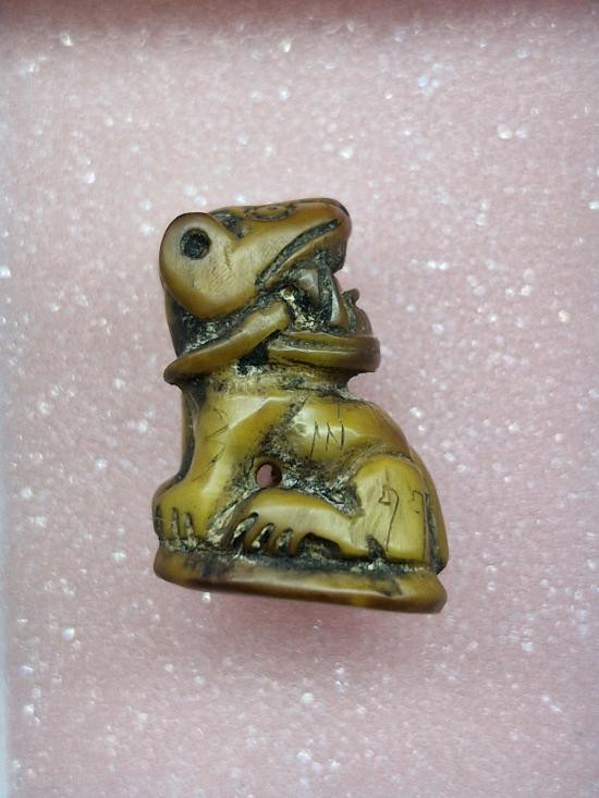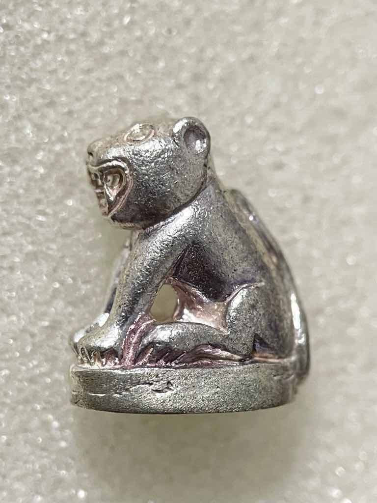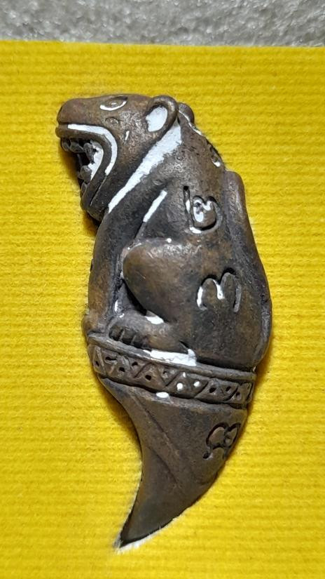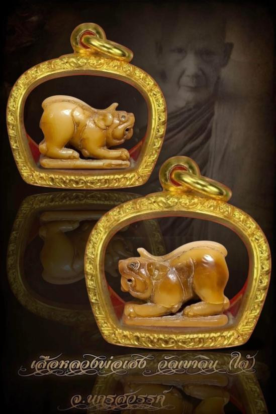 สุดยอดเสือในตำนานแห่งแดนสยาม เขี้ยวเสือแกะ หลวงพ่อเฮง วัดเขาดิน จ.นครสวรรค์ สร้างราวปี2485 ตัวนี้พิเศษแกะจากเขี้ยวเสือ หมายเหตุ ไม่มีตลับทองแล้วนะค่ะ ผลออกบัตร ไม่ออกผล นะค่ะ |