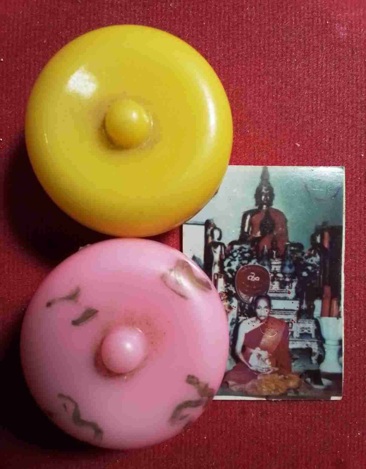 ตลับสีผึ้ง หลวงพ่อกวย วัดโฆสิตาราม จ.ชัยนาท ปี 2521 รุ่นงานฝังลูกนิมิตร สวยเดิมเก่าหายาก ตัวจริงครับ วัดใจขายทุกราคาจบเท่าไหนเอาเท่านั้นครับ |