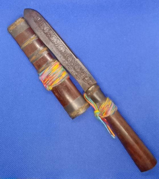 วัดใจ**เครื่องราง มีดหมอด้ามไม้+ฝักไม้*{ รัดด้วยแหมเงินเก่า }*ยาว 5.นิ้ว ฝักทำใหม่....ตามสภาพครับ |
