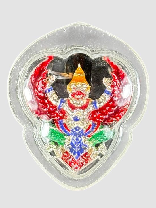 พญาครุฑ รุ่นมีโชคพันล้าน หลวงพ่อโชคชัย วัดน้ำดิบ เนื้อมหาชนวนชุบ3กษัตริย์กายชมพู สร้าง 80 องค์ หมายเลข 35 |