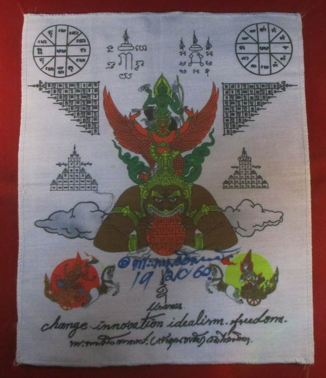 เคาะเดียวแดง 250 พญาครุฑทรงมหิธานุภาพ เชิญธงเศรษฐี วัดครุฑธาราม จ.พระนครศรีอยุธยา พิมพ์ใหญ่ สูง 4.5 ซ.ม. เนื้อตริยะโลหะ (สัมฤทธิ์ผล) ชุบ 2 K ลงยาราชาวดี ซีลเดิมยังไม่ได้แกะ |