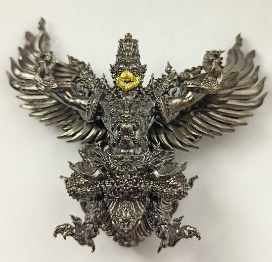 พญาครุฑ "ชนะมาร" รุ่น 5 วัดครุฑธาราม (พิมพ์ใหญ่ ขนาด 4 ซม.) เนื้อเหล็กน้ำพี้ ปากปิดทองคำแท้ เบอร์ 250 พร้อมกล่องครับ |