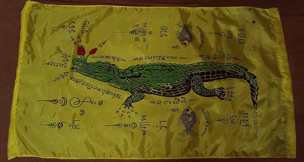 ***วัดใจ*** ผ้ายันต์...จระเข้...มหาลาภ (รุ่นแรก) วัดท่าอิฐ จ.นครนายก ปี21 (หลวงพ่อสนิท วัดลำบัวลอย , หลวงพ่อรวย วัดตะโก , หลวงพ่ออั๋น พระญาติการาม ปลุกเสก) + (ขนาดใหญ่ 16 นิ้ว x 28 นิ้ว) พุทธคุณเยี่ยม |
