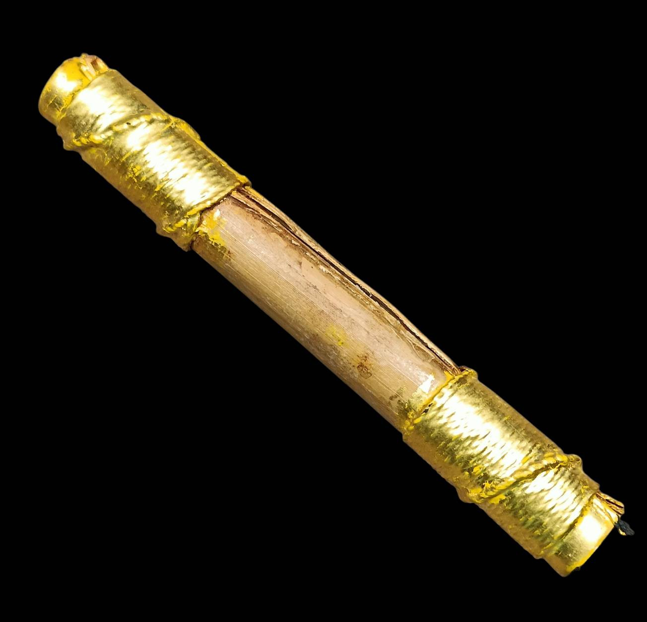ตะกรุดหมุนได้ เนื้อ 3 กษัตริย์(ตะกั่ว-ทองเหลือง(อั่ว)-ทองแดง(ไส้)) เหมาติดมาไม่ทราบที่? |