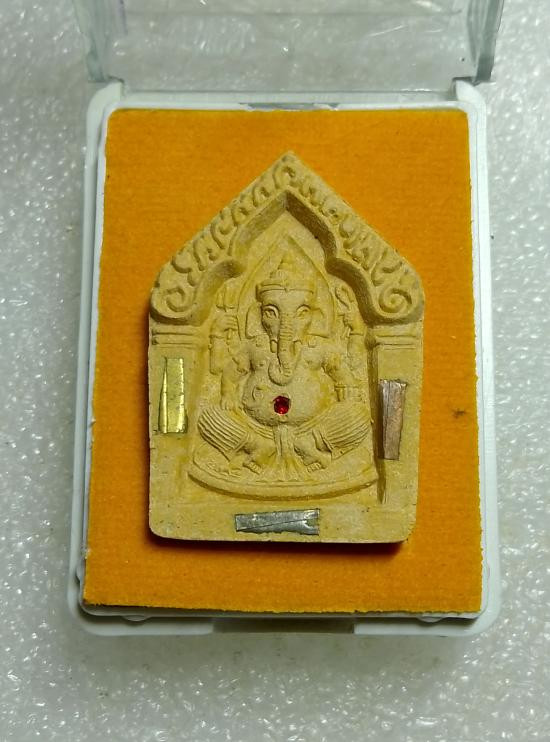 พระพิฆเนศ เนื้อผง ฝังพลอย ตะกรุด 3 กษัตริย์ รุ่น โชคดีมีสุข หลวงปู่หงษ์ วัดเพชรบุรี จ.สุรินทร์ ปี2547 พร้อมกล่องเดิม |