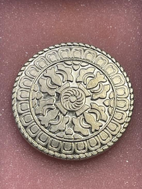 เหรียญพ่อแก่เงินล้าน ตีตะโพนเรียกทรัพย์ รุ่นแรก อุทยานพ่อแก่เงินล้าน จ.อยุธยา เนื้อกะไหล่เงินลงยาเหลือง |