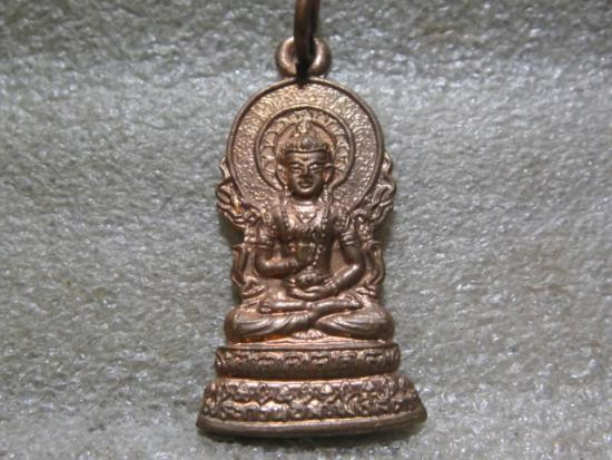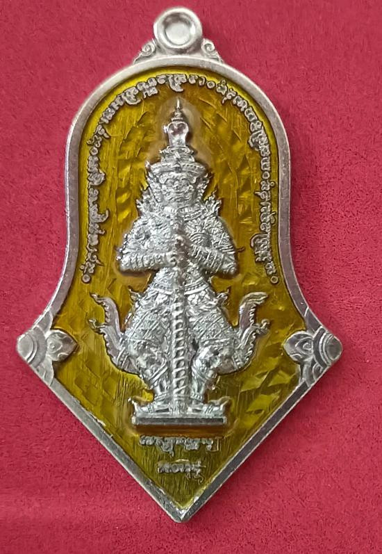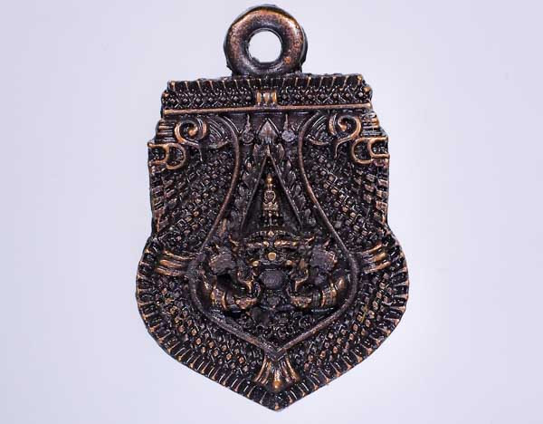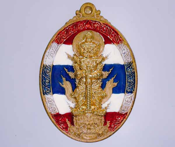 หัวนะโม หลังรูปเหมือนเกจิ เนื้อกะไหล่ทองลงยาแดง ไม่ทราบที่ |