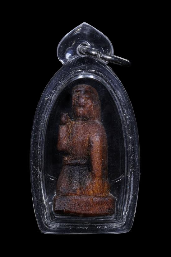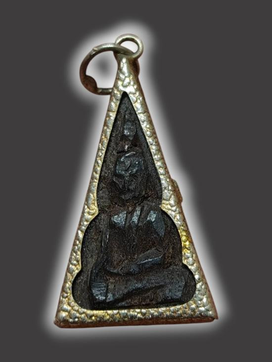 A2089.พระพุทธไม้แกะพิมพ์สามเหลี่ยม ไม่ทราบที่ เลี่ยมเดิม เคาะเดียวเเดง |