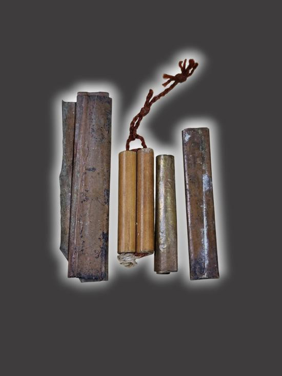 150.- ems ตะกรุด สาริกา รุ่นแรก (จารมือ) ปี 2558 เนื้อทองแดง พระอาจารย์ต๋อง วัดพุตะเคียน อ.ไทรโยค จ.กาญจนบุรี ตอกโค๊ด,ตอกเลข มีกล่องเดิม |
